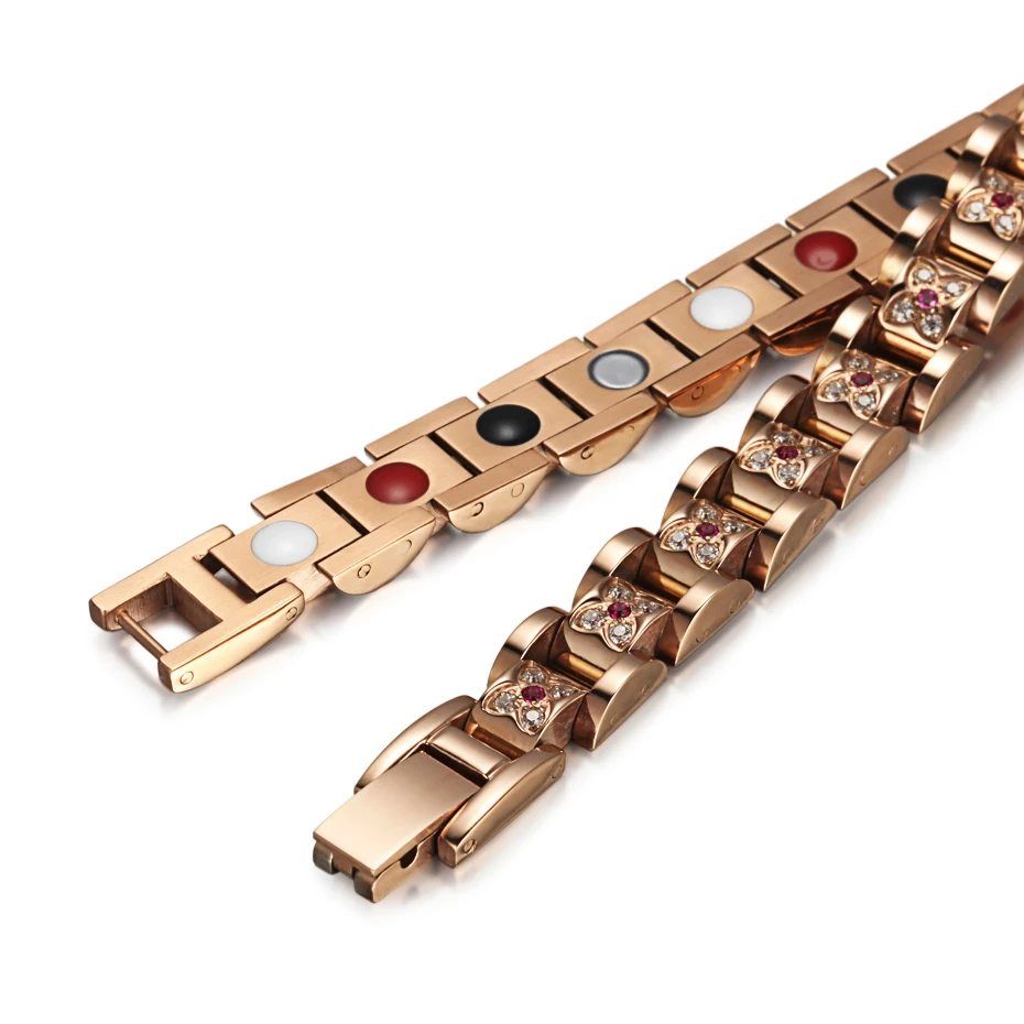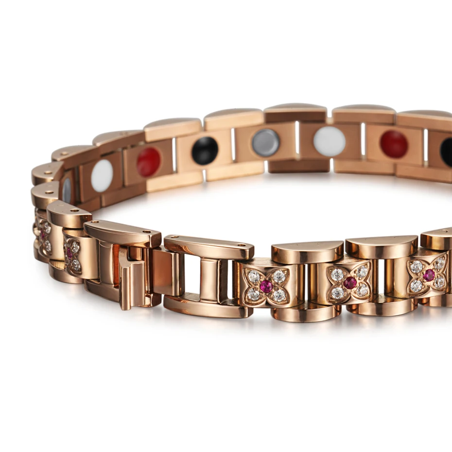 RainSo Magnetic Health Bracelet Bangle for Women Flower Zircon Charm Chain Link Hologram Bracelet F RLN