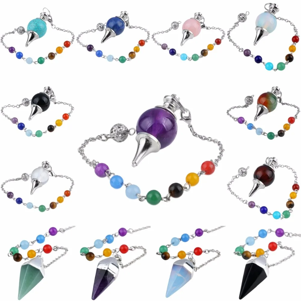 SUNYIK 7 Chakra Beads Healing Reiki Dowsing Divination Gem Stone Crystal Stone Point Pendulum
